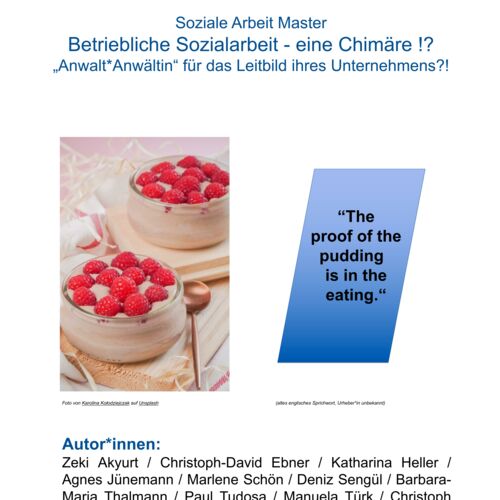 Anzustreben ist die Erarbeitung eines Leitfadens für eine realistische Umsetzung von Betrieblicher Sozialarbeit bei kooperierenden Unternehmen. Nach Erarbeitung der genannten Themen sollen die gewonnen Informationen in Seminaren und Workshops einer interessierten Fachöffentlichkeit sowie Klein-, Mittel- und Großunternehmen vorgestellt sowie vermittelt werden.