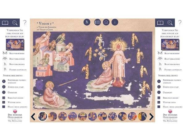 Darüber hinaus kann für jede Figur und für jeden Bereich einer der Illustrationen durch einen Touch die entsprechende Bibelstelle und zugehörige Interpretation angesehen werden. Die Anwendung auf dem 47 Zoll großen Multi-Touch Tisch kann von mehreren BenutzerInnen gleichzeitig bedient werden.
