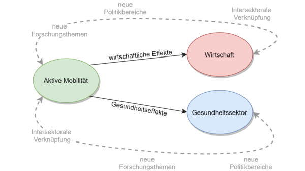 Der Stellenwert von Aktiver Mobilität (umfasst Fortbewegungsarten, die ganz oder teilweise auf Muskelkraft beruhen, wie Radfahren, zu Fuß gehen, Tretroller fahren etc.) ist in den letzten Jahren größer geworden. Als zwei wesentliche Vorteile dieser Entwicklung gelten, dass körperliche Aktivität einen gesundheitsfördernden Effekt hat und dass der Ausstoß an Treibhausgasen reduziert und damit dem Klimawandel entgegengewirkt wird. Obwohl diese positiven Effekte klar erkennbar sind, werden Maßnahmen zur Förderung Aktiver Mobilität unzureichend in der Planung, bei der Zuweisung von Geldern und bei den politischen Entscheidungsprozessen berücksichtigt. Dies erscheint geboten, da Sektoren daraus Nutzen ziehen (Bereiche der Wirtschaft, Gesundheitswesen), die Aktive Mobilität selbst nicht direkt fördern. Aktive Mobilität ist daher als intersektorales Thema zu positionieren. Der volkswirtschaftliche Nutzen, der aus ihr erwächst, sollte zum Teil auch wieder in die Förderung von Aktiver Mobilität zurückfließen.