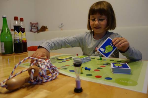 NutriMove zielt auf die Zunahme des Ernährungswissens acht- bis zehnjähriger Kinder ab. Es ist ähnlich wie das bekannte Activity®-Spiel aufgebaut und durch Bewegungsaspekte erweitert.