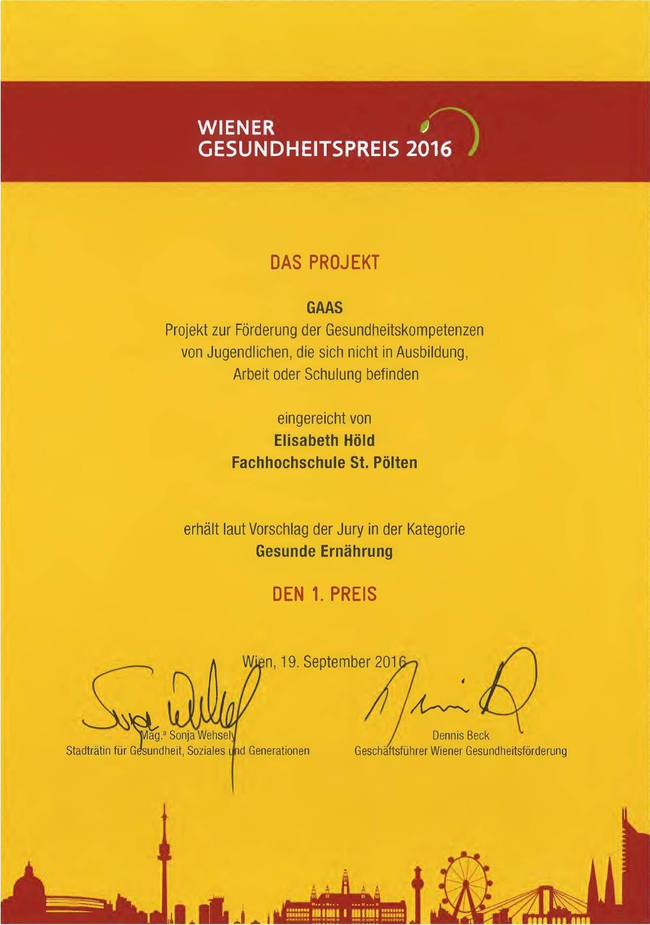 - Presseinformation FH St. Pölten: Auszeichnung mit dem Wiener Gesundheitspreis (September 2016)