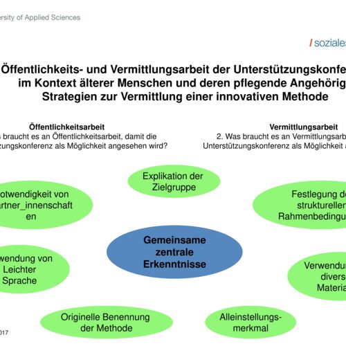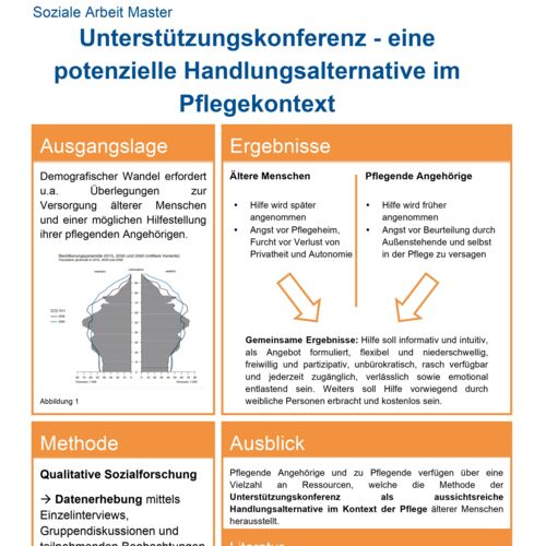 Die Familienkonferenz als unterstützendes Verfahren der sozialen Arbeit hätte im Kontext der Betreuung älterer Familienangehöriger das Potential, diese Dynamik aufzubrechen. In diesem Masterprojekt evaluierten Studierende die Familienkonferenz im Sinne einer Unterstützungskonferenz im Kontext der Betreuung älterer Familienangehöriger. Sie nahmen aus der Praxiserfahrung eine konzeptionelle Konkretisierung vor und erstellten ein praxistaugliches Konzept.